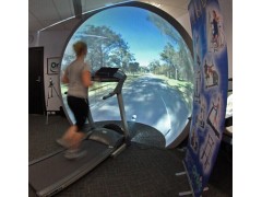 立式飞行穹幕投影系统由立式半球幕,球面投影设备,音响系统,